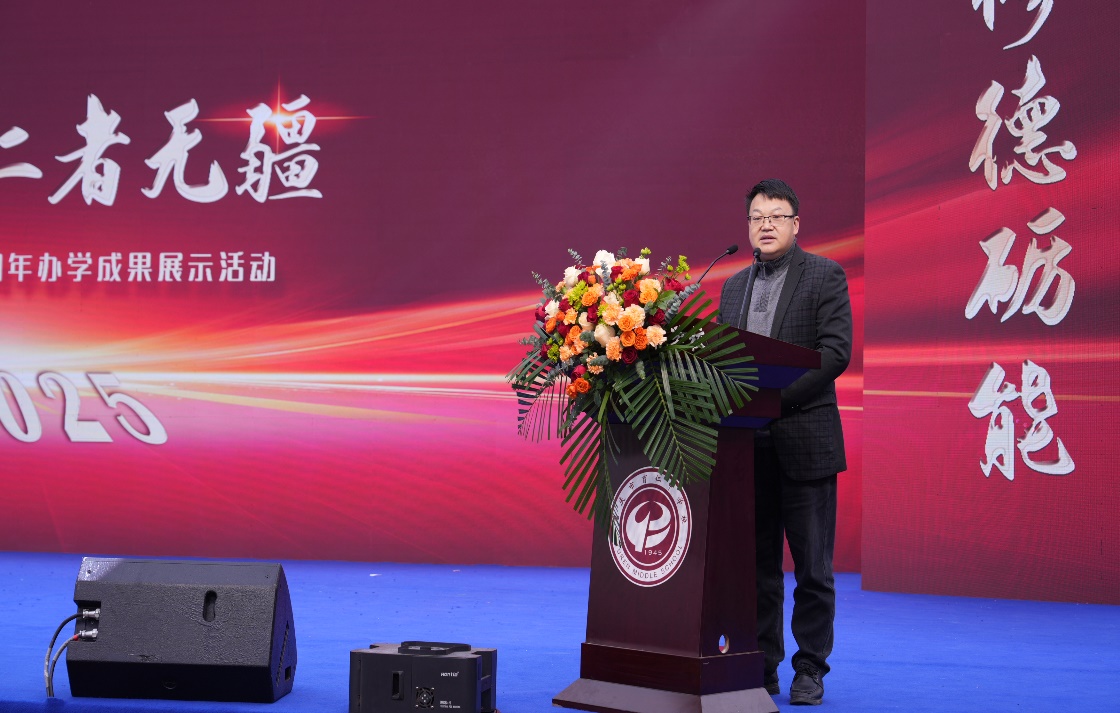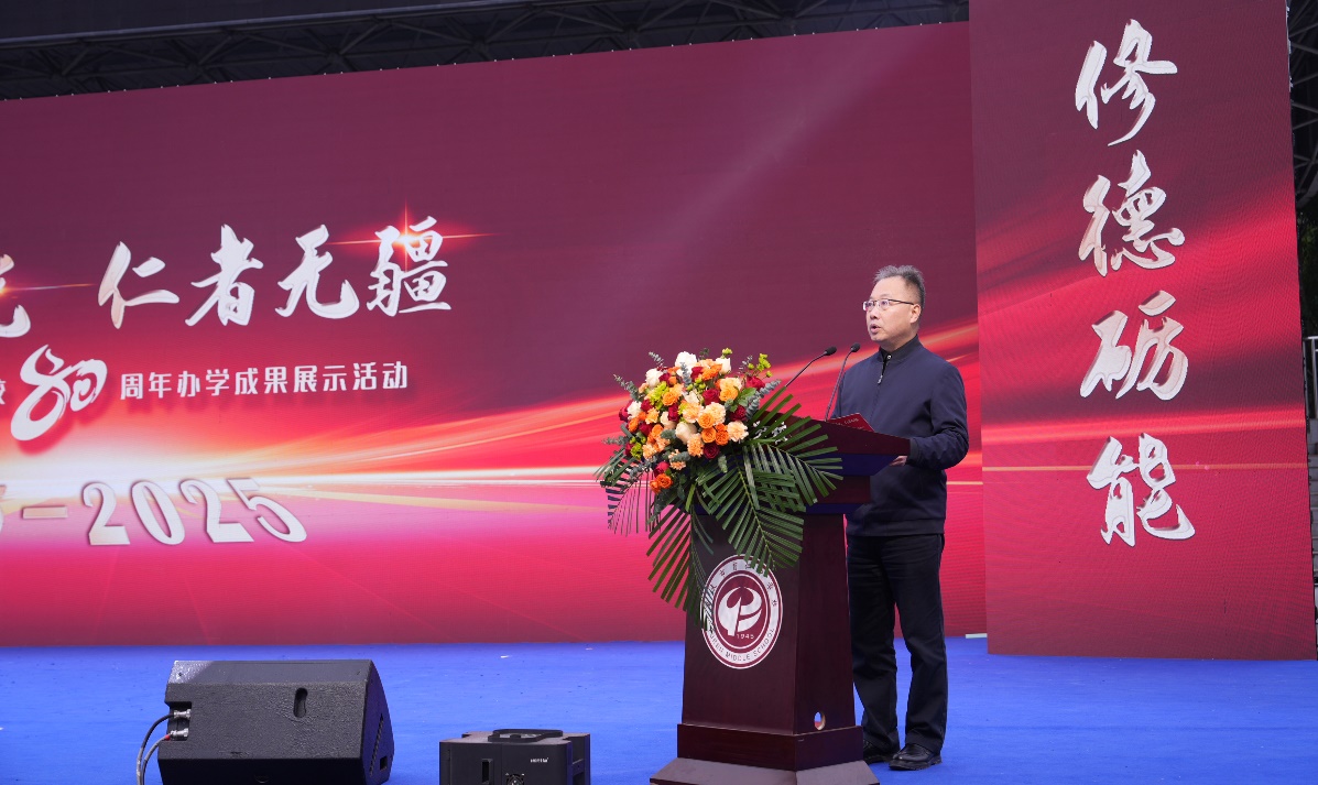 区人大副主任吴云斌向学校办学八十周年表示热烈祝贺。他指出,育仁中学扎根两江这片热土,八十年如一日坚守教育报国初心,不仅为区域发展培育了大批优秀人才,更以‘仁爱’文化滋养了一代又一代育仁人的精神品格。他强调,区委、区政府将持续加大对育仁中学的支持力度,支持育仁中学与南开两江中学等优质资源深度合作,让育仁中学的办学质量更上一层楼。