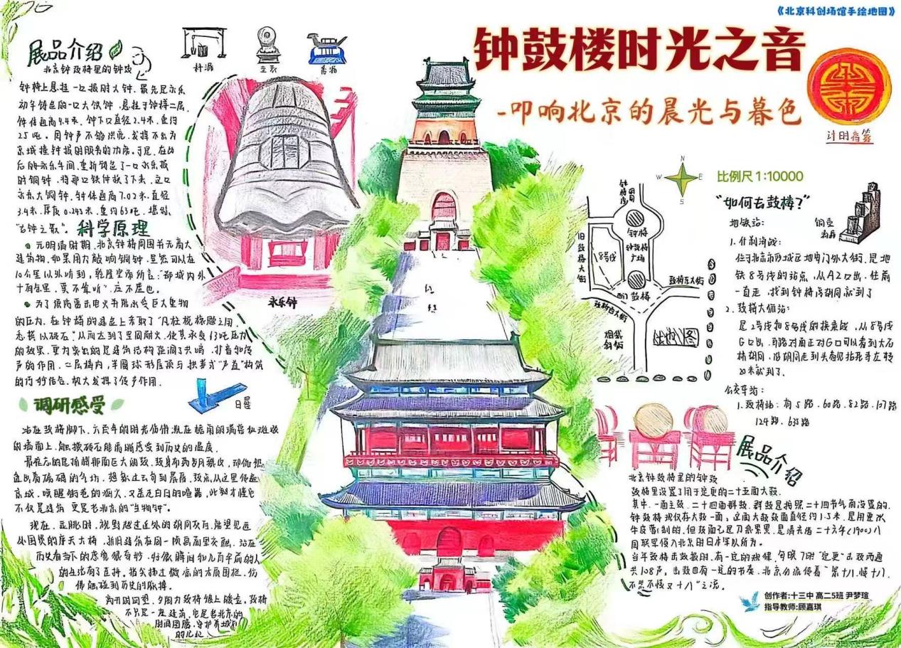 参加这次“手绘地图”的活动,让我增加了对中国历史的认同感。这次的手绘地图,从确认场馆到梳理路线,再到来到实地参观钟鼓楼,让我对北京中轴线的了解更近了一步,同时也增强了我实践和动手的能力,这让我感觉非常的难得 。同时,亲手绘制钟鼓楼和路线让我对它的印象更加深刻,以后也可以带着朋友去钟鼓楼参观了,还能给朋友讲解我所了解的详细的永乐钟和鼓。总之,这对我来说是非常难忘且有意义的一次活动。