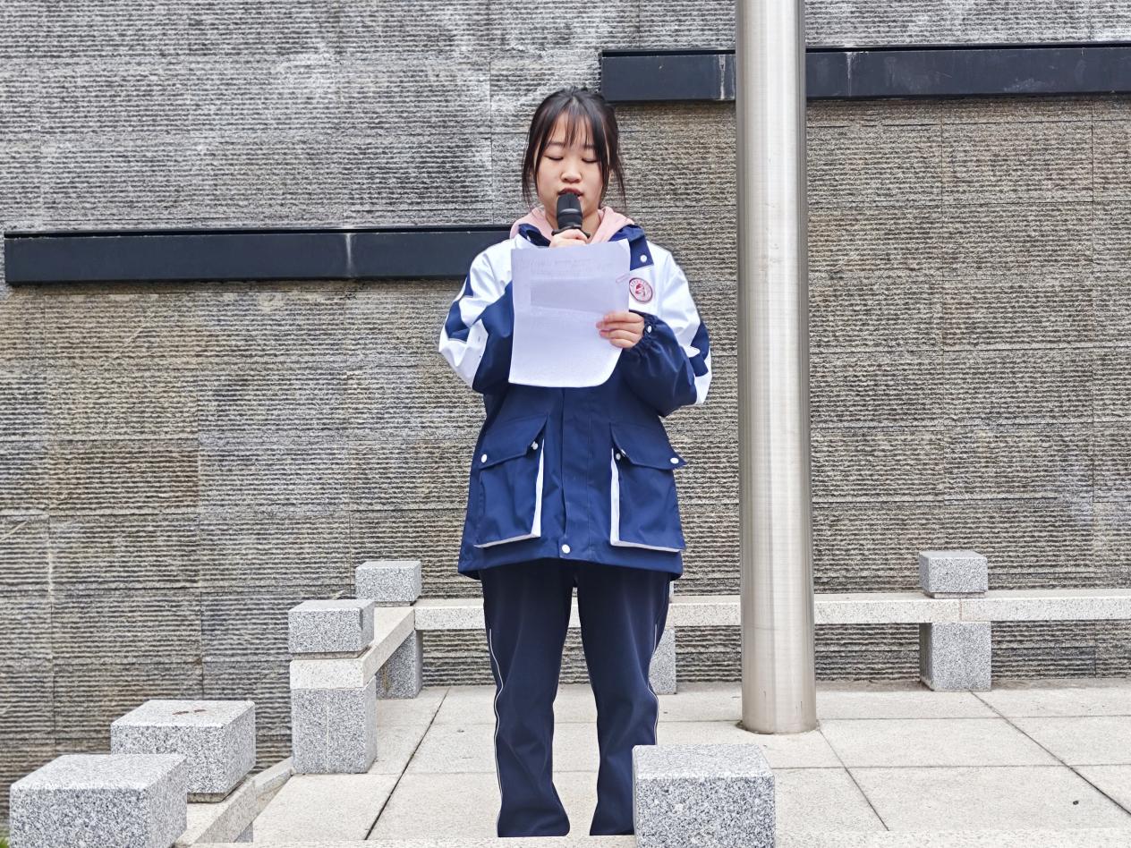 伴随着激昂雄壮的《义勇军进行曲》,五星红旗冉冉升起,全体师生肃立行注目礼,心中涌动着对祖国的无限崇敬与热爱。升旗仪式结束后,高一一班梁钰鑫同学带来题为《沐改革春风绘时代华章》的国旗下演讲。她呼吁全体同学从历史中汲取奋进能量,以青春之勇气突破局限,以务实之态度追逐梦想,将家国情怀融入日常学习,坚守初心使命,勇担时代重任。