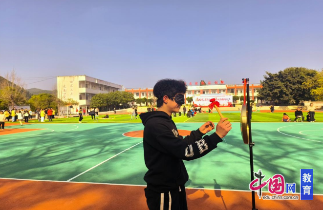 趣味游园环节,钓鱼、蒙眼敲锣、赶鸡进笼、投壶等活动趣味十足,学生可凭游园积分兑换零食,师生在欢声笑语中增进互动。
