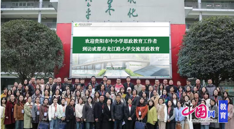 初冬时节,成都市龙江路小学暖意融融,迎来多批教育同仁到访交流。近期,贵州省中小学思政教育工作者、青岛市跟岗校长团队、四川省教师教育跟岗实践项目的跟岗教师及成都市青羊区思想政治常态化建设培训班思政教育工作者先后走进该校,围绕思政教育的校本实践与创新开展深度交流。本次活动以“沉浸式观摩、互动式学习”为主线,聚焦立德树人根本任务,共同探讨新时代思政育人路径。