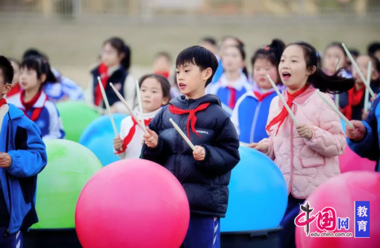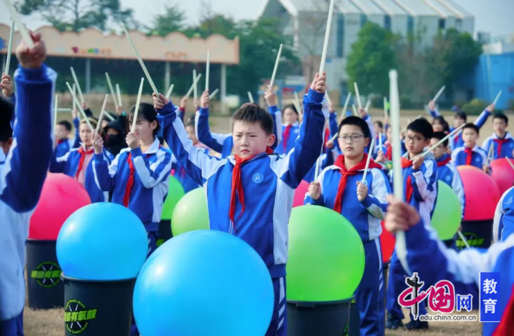 拓展有氧鼓活动中,学生们跟随节奏敲击鼓面,在整齐的鼓点中感受团队协作的力量,增强了班级的凝聚力。