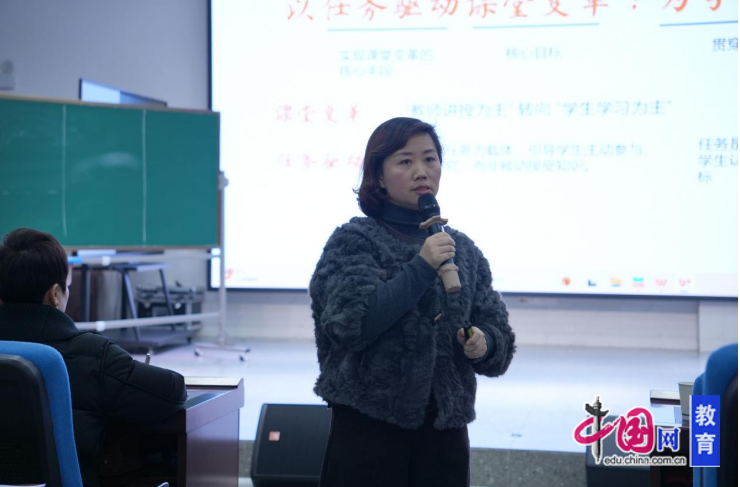 会议伊始,江安县师培中心主任陈艳引导教师们聚焦课堂真实困境,围绕“看图写话表达不清”“学生注意力不集中”“复习课参与度低”“教学时间分配不均”“深度学习不足”“学习兴趣缺乏”等教学痛点展开反思。在此基础上,她系统阐述了课堂为何必须变革——唯有真正“为学习而设计”,教学才能回应学生真实需求,落实核心素养培育。随后,她以薛法根老师的教学思想为引,结合五年级课文《手指》的课例,深入浅出地讲解了如何通过“任务驱动”实现课堂重构。她指出,有效的任务设计应做到:精准定位目标,紧扣核心素养;科学设计任务类型,激发学生内在学习动力;合理搭建学习支架,保障每一位学生的学习实效。
