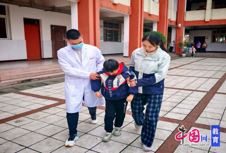 演练时,学校根据方案模拟相关情景并开展实操演练。午餐后,正在教室陪同学们午休的文老师,发现班上有2名学生突然出现腹痛、恶心、呕吐等症状,该教师迅速告知行政值周何华安以及学校卫生老师丁勇;卫生老师与班主任文香利第一时间抵达现场,丁勇老师对学生进行初步检查及询问,根据学生出现的症状,初步判定两名学生为食物中毒”,立即上报学校应急领导小组组长周伟;组长周伟接报后,启动《宜宾市翠屏区牟坪镇中心小学校食品安全突发事件应急演练预案》,应急小组成员迅速到岗,按职责分工,科学有序地开展食物中毒处置工作。